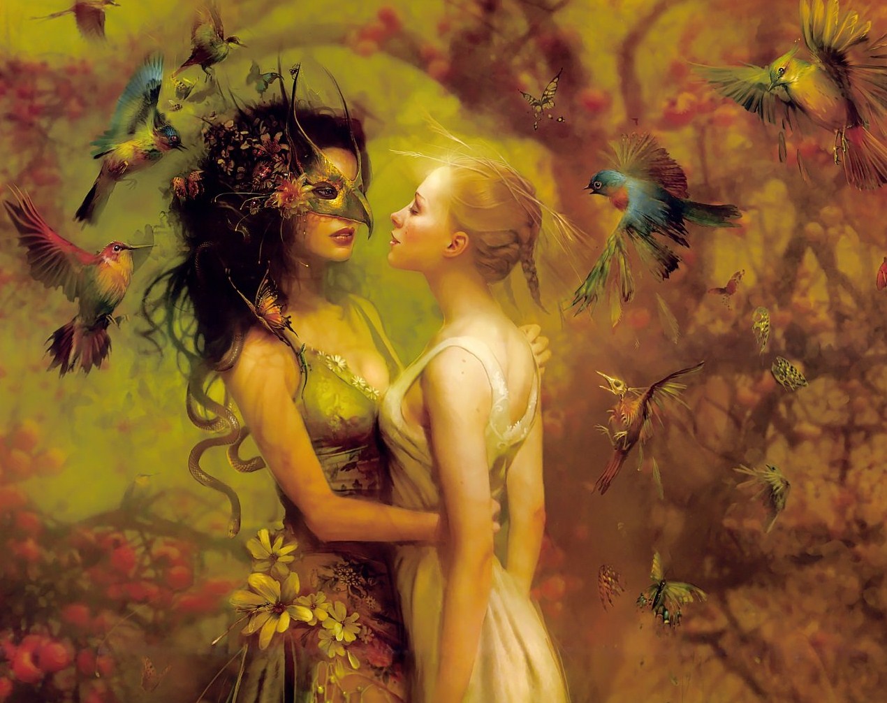 With birds of paradise they sit